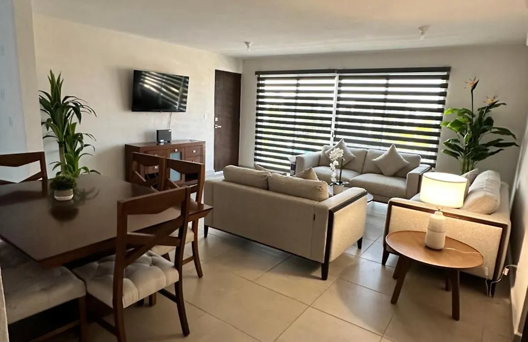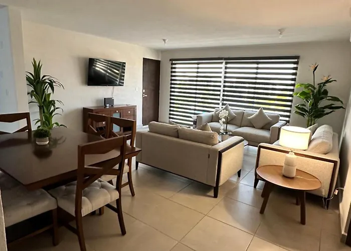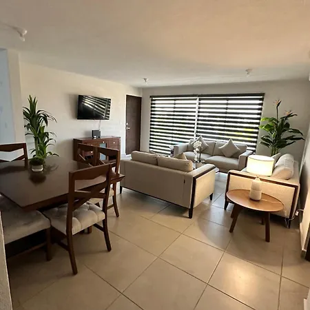 Con vistas al jardín, el Apartamento Departamento en zona Diamante a 3 minutos del mar Acapulco se encuentra a tan solo 14 minutos a pie del Campamento Tortuguero Playa Hermosa en Acapulco. Los huéspedes pueden darse un chapuzón en la piscina y relajarse tras un largo día.